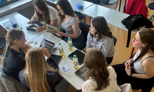 Beim Kennenlernen mit den Schüler*innen der Hildegardisschule Bingen wurden gemeinsam erste Ideen zur Erinnerungsarbeit gesammelt und nächste Schritte für das Projekt geplant.