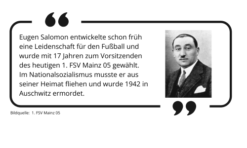 Im Zeitraum vom 1. Oktober 2024 bis 30. September 2025 widmeten sich die Abteilung Politische Bildung der IB Südwest gGmbH in Mainz und die Kooperationspartner*innen SchUM Städte e.V. und der 1. FSV Mainz 05 im Rahmen des Projekts 05ER Klassenzimmer gemeinsam mit den jungen Menschen der Lebensgeschichte und dem Schicksal Eugen Salomons.
